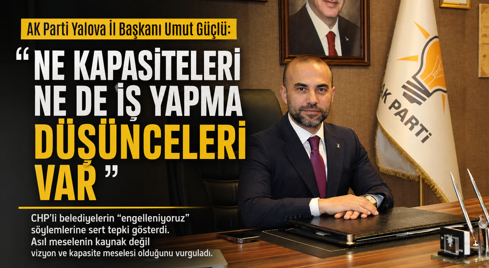 AK Parti Yalova İl Başkanı Umut Güçlü, yerel yönetimlerin performansına ilişkin yaptığı kapsamlı değerlendirmede muhalefet belediyelerine yönelik sert eleştirilerde bulundu. CHP’li belediyelerin sıkça dile getirdiği “engelleniyoruz” söylemini hedef alan Güçlü, asıl sorunun kaynak yetersizliği değil, yönetim anlayışı, vizyon eksikliği ve iş yapma kapasitesi olduğunu savundu. Güçlü, siyaseti bir hizmet yarışı olarak gördüklerini belirterek, “Bizim anlayışımızda rekabet vatandaş için daha iyi hizmet üretmenin aracıdır. Ancak karşımızda bu yarışa girecek bir irade göremiyoruz” dedi. Muhalefet belediyelerinin başarısızlıklarını merkezi idareye bağladığını ifade eden Güçlü, bu yaklaşımın sorumluluktan kaçmak anlamına geldiğini ileri sürdü.