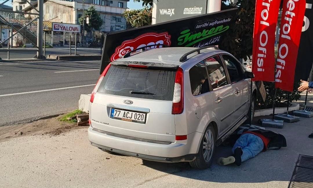 Kaza, öğle saatlerinde Çiftlikköy ilçesi Yalova-İzmit kara yolunda meydana geldi. İddiaya göre, yol kenarındaki akaryakıt istasyonuna giren F.S.A.'nın (22) kontrolünü yitirdiği 77 ACJ 020 plakalı otomobil, önce yaya D.B.'ye, sonra da fiyat tabelasına çarptı. D.B. çevredekiler tarafından sıkıştığı otomobilin altından çıkarıldı. İhbar üzerine adrese polis, sağlık ve itfaiye ekipleri sevk edildi. D.B. ve F.S.A., ilk müdahalenin ardından ambulanslarla Yalova Devlet Hastanesi'ne kaldırıldı. Tedaviye alınan yaralılardan D.B.'nin hayati tehlikesinin bulunduğu öğrenildi. Otomobilin sürücüsü F.S.A.'nın da hafif yaralandığı belirtildi. Kazaya ilişkin soruşturma başlatıldı.